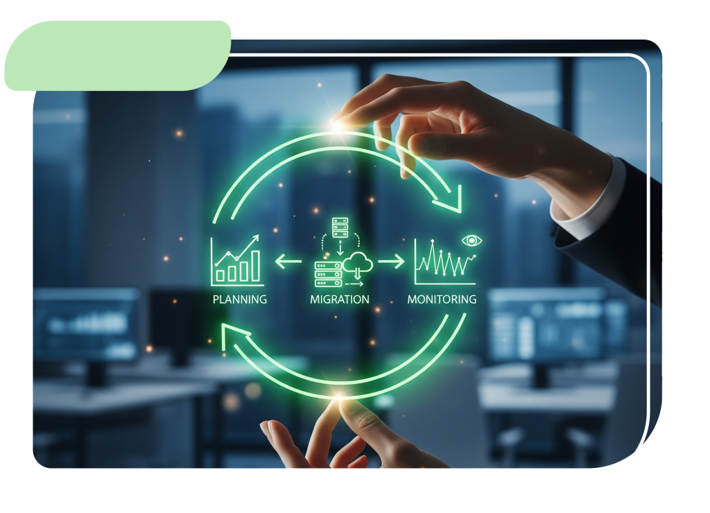 Não entregamos apenas um projeto; oferecemos uma parceria de ponta a ponta, desde o diagnóstico e planejamento estratégico, passando pela migração, até o monitoramento e suporte contínuos.